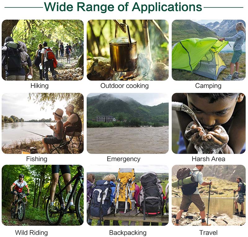 Filterwell water filter straw. This portable and light weight water straw is ideal for backpacking, hiking, camping, scouting,back country travel, mission trip and emergency preparedness. Hollow fiber UF membrane carbon fiber combination .can remove 99.9999% , such as salmonella, cholera, E.coli, and protozoa, such as giardia, cryptosporidium, and sediment, odor, color, chlorine, organic matter and heavy metal.